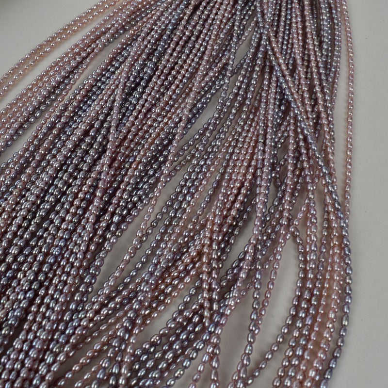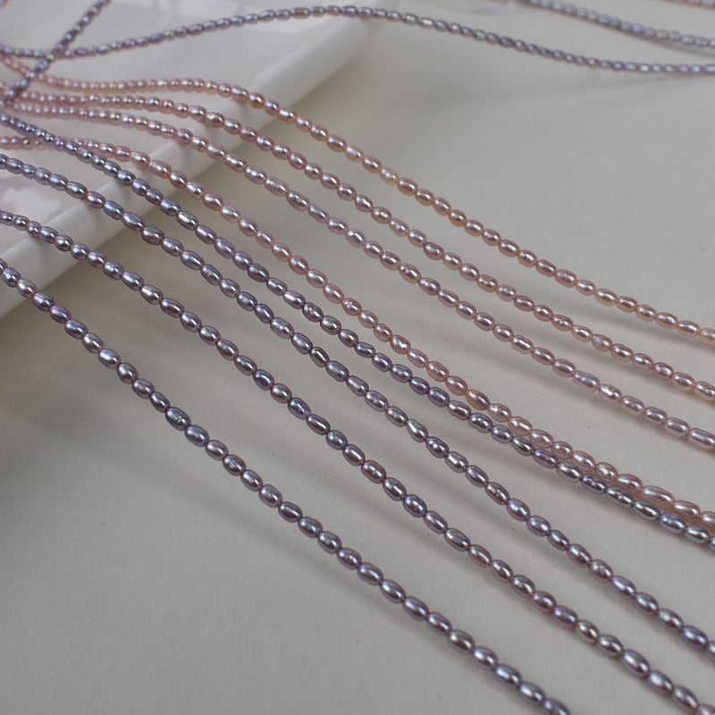 ลูกปัดข้าวสารสีม่วงน้ำจืดขนาดเล็ก 2-3 มม. จำนวน 1057 เม็ด รวมไข่มุกขนาดเล็ก 2-3 มม. แบบคละสี