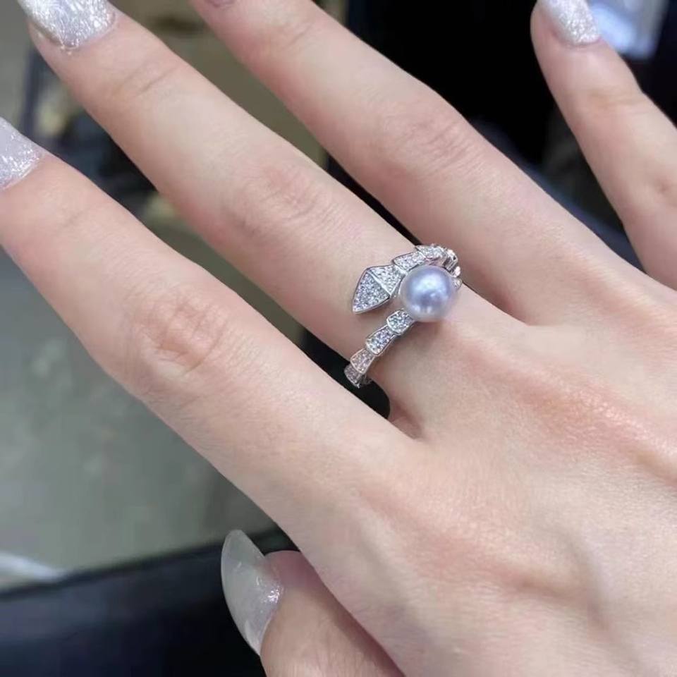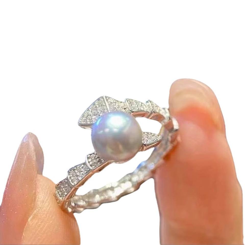 ชุดอุปกรณ์ DIY 10571 แหวนเงินแท้ S925 ประดับมุกคู่ ขนาด 6-8 มม. ทรงกลม ชุดเครื่องประดับรูปงู