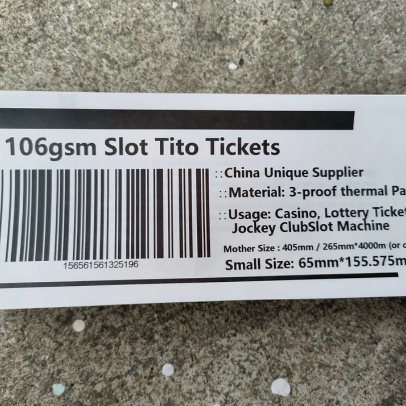 กระดาษเทอร์มอลสำหรับสล็อตเกมและสลากกินแบ่งรางวัล ขนาด 106 กรัม 65*156 มม.