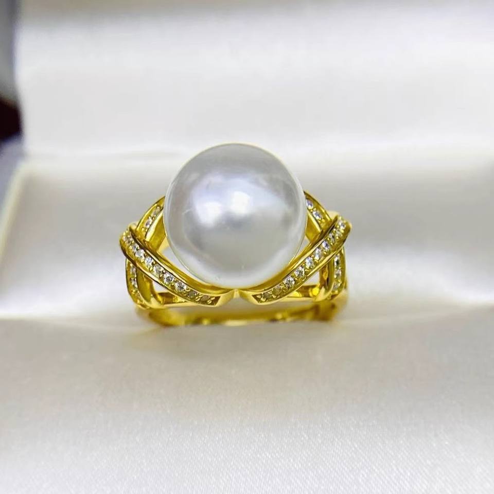 อุปกรณ์ทำเครื่องประดับมุก DIY 10610 แหวนเงินแท้ S925 พร้อมลูกปัดกลมขนาด 12-13 มม. อุปกรณ์ทำเครื่องประดับแฟชั่น ขนาด 6 มม.