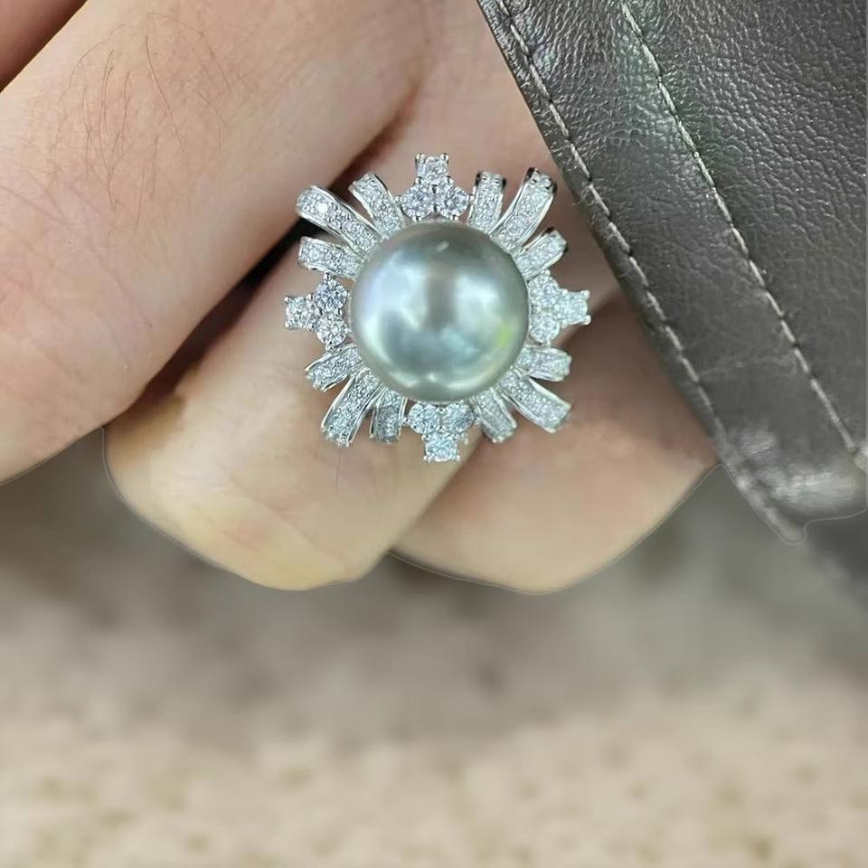 อุปกรณ์ทำเครื่องประดับมุก DIY 10635 แหวนเงินแท้ S925 แบบกลวง รองรับหลายเม็ด รุ่นหนา ฝังเพชรเจียระไน 3-4 มม. เครื่องประดับเงิน