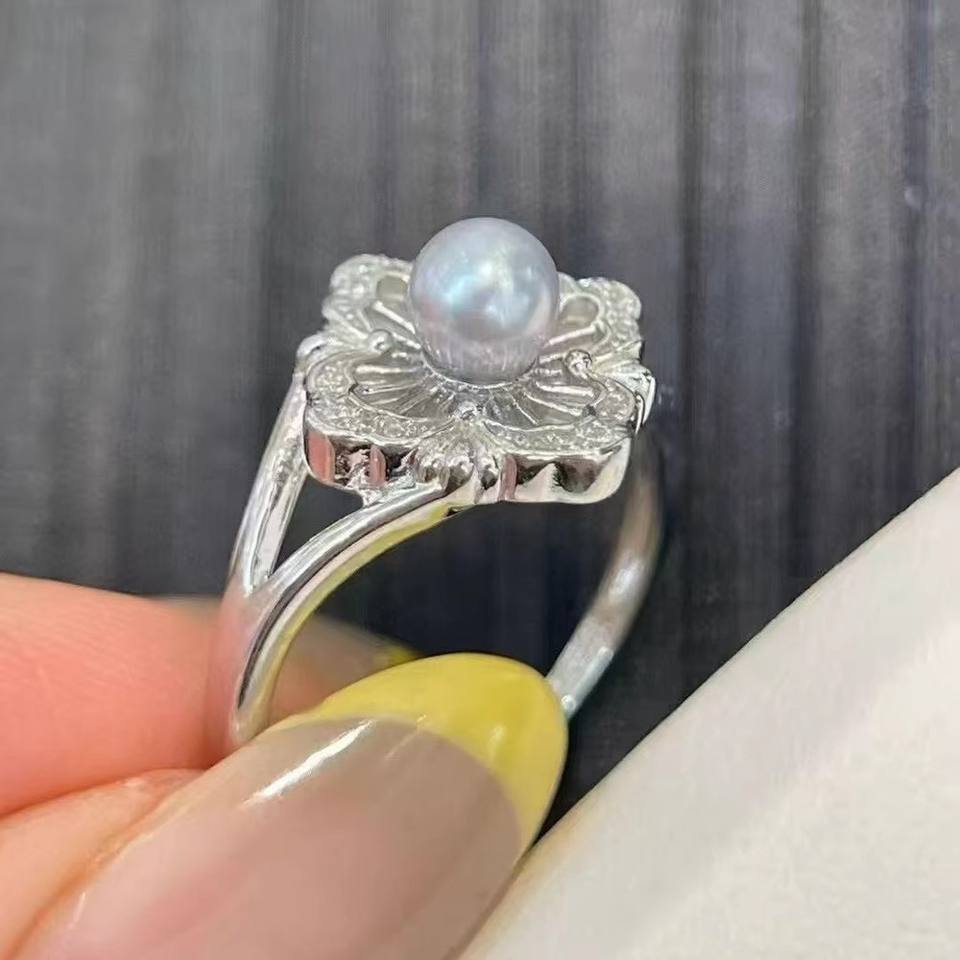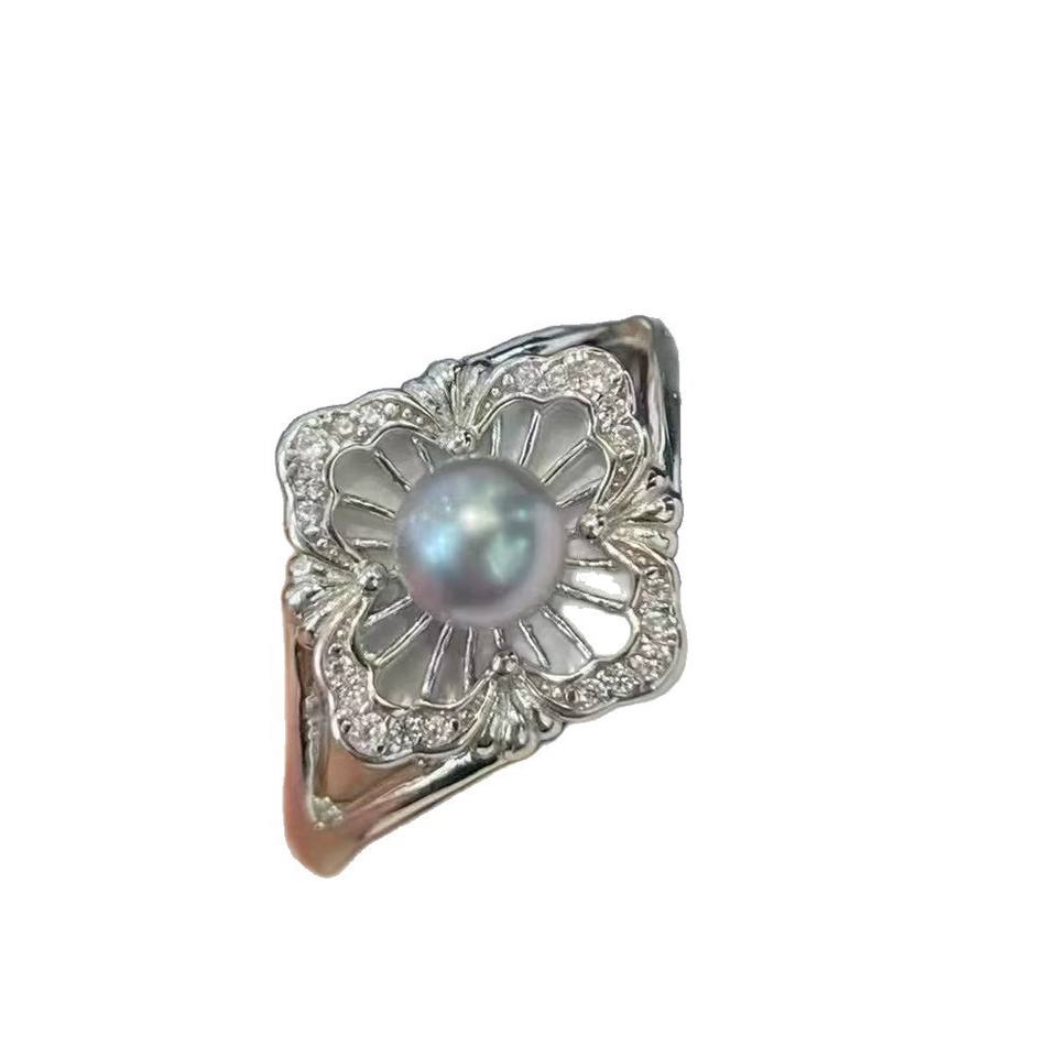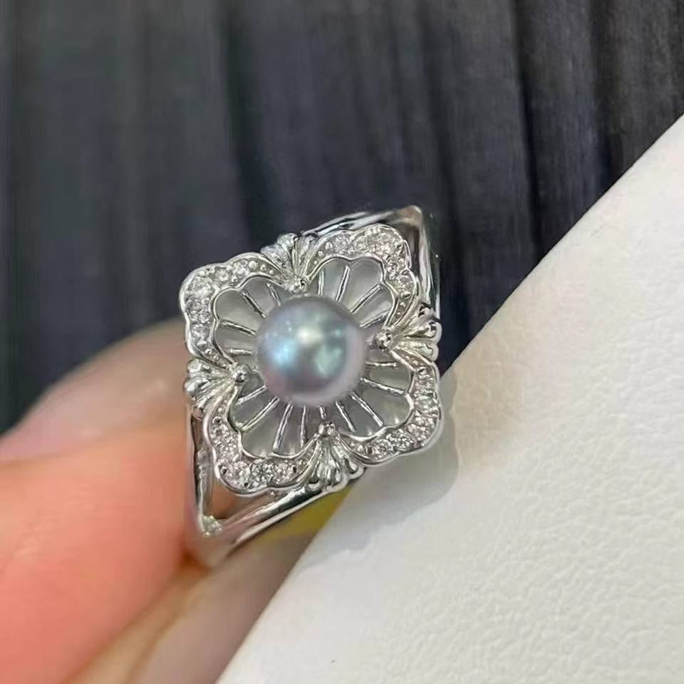 ขาตั้งเครื่องประดับเงิน DIY 10679 สำหรับลูกปัดกลมขนาด 7-9 มม. ขาตั้งแหวนเงินแท้ S925 แบบไม่มีลวดลาย พร้อมอุปกรณ์ตกแต่งแฟชั่นทันสมัย