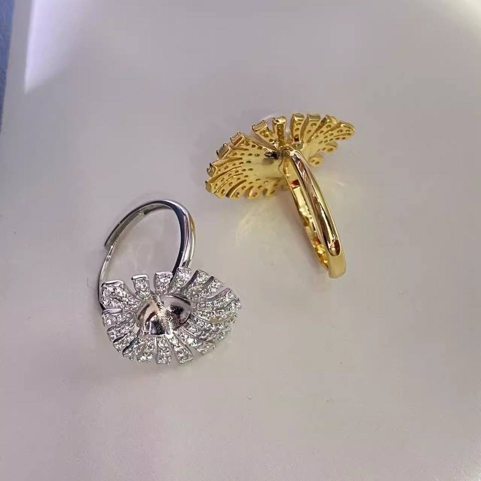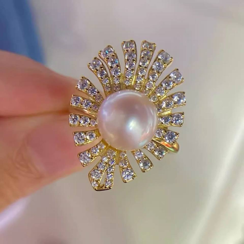 อุปกรณ์ทำเครื่องประดับมุก 10687DIY แหวนเงินแท้ S925 พร้อมฐานตั้งเครื่องประดับเงินแฟชั่น สำหรับใส่ไข่มุกทรงกลมขนาด 8-12 มม.