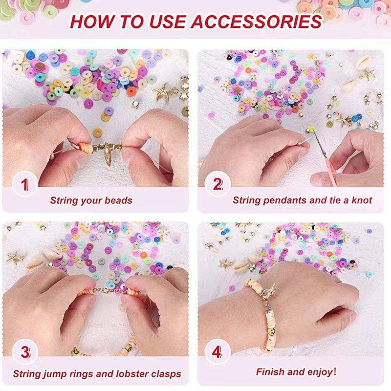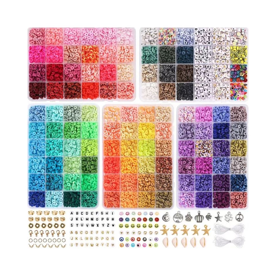 ชุดสร้อยข้อมือลูกปัดดินโพลิเมอร์แบบนิ่มบรรจุกล่อง108สีสำหรับทำเครื่องประดับ