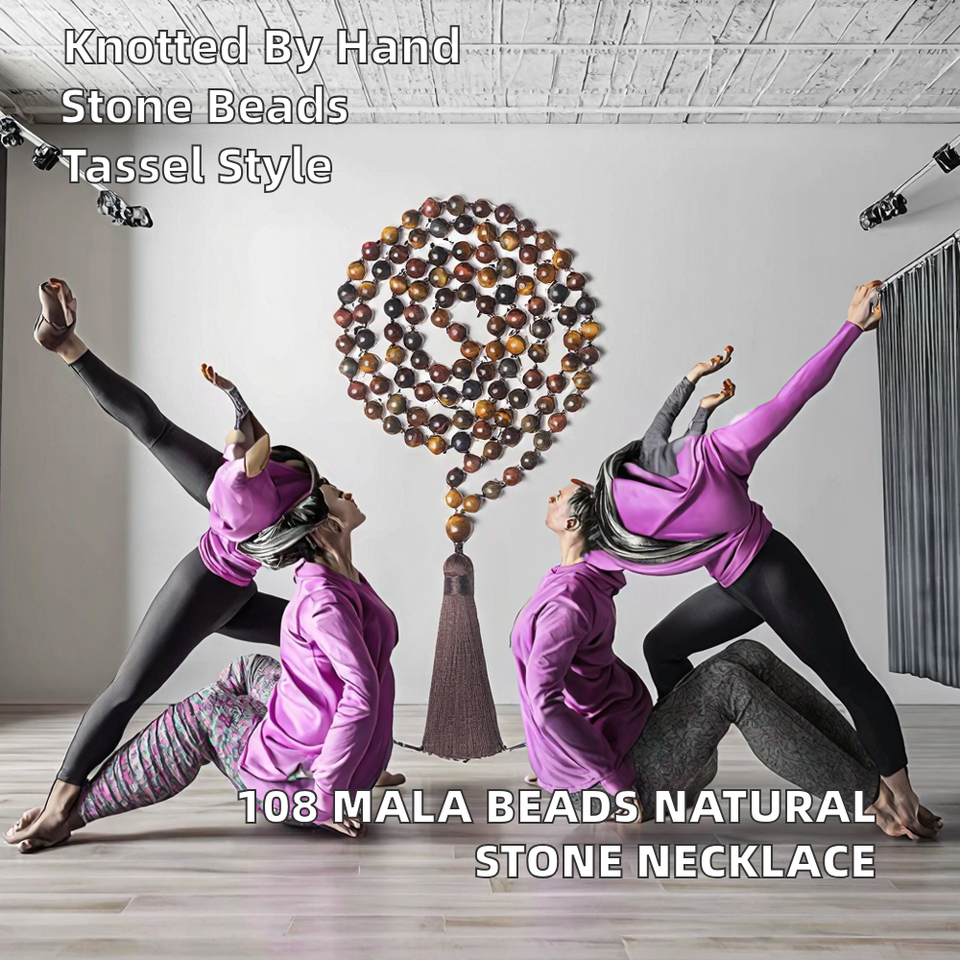 108 Vintage Agate Mala Beads Necklace 8mm Natural Stone Prayer Yoga Meditation Hand Knotted Tassel Gift