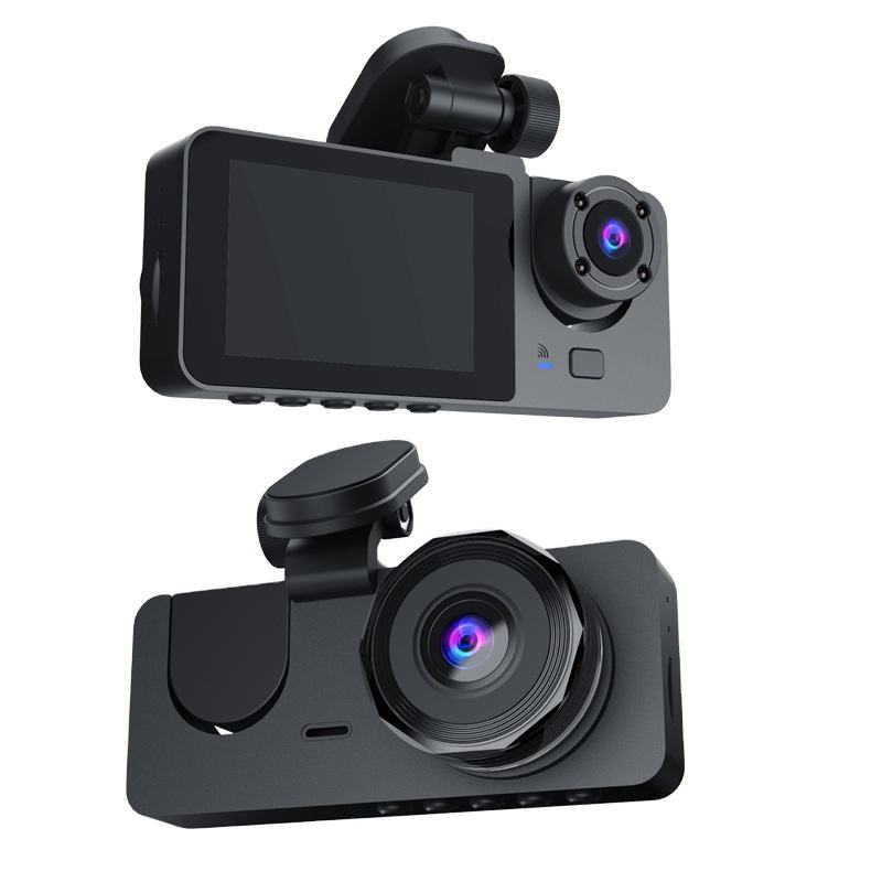 กล้องติดรถยนต์เลนส์คู่1080P พร้อมกล่องสีดำไร้สายสำหรับรถยนต์มองเห็นกลางคืนและหน้าจอ IPS