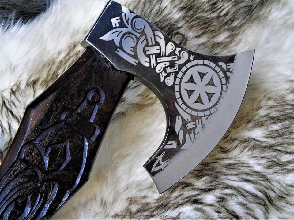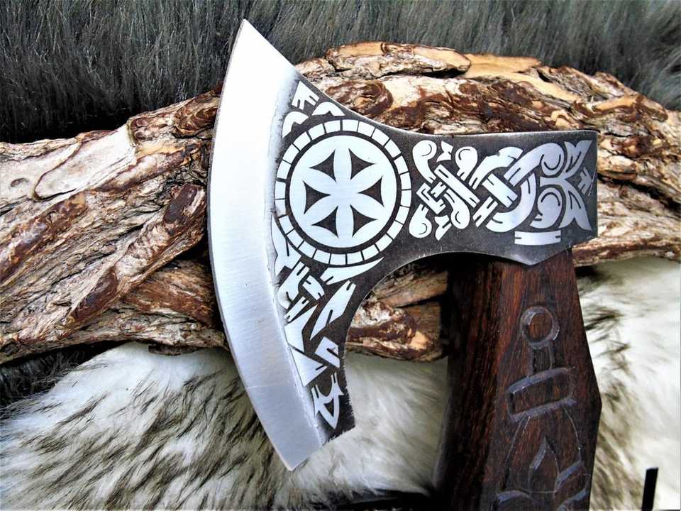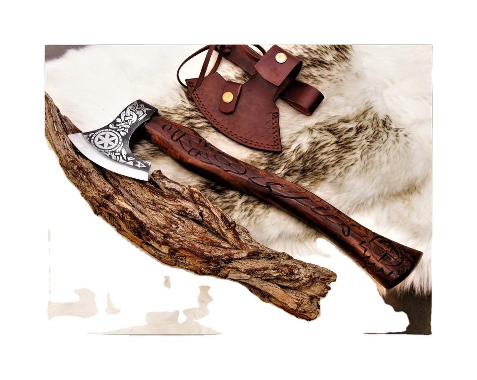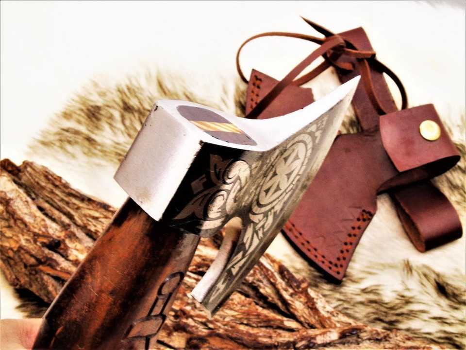 ขวานเหล็กคาร์บอนสูง1095เกรดอุตสาหกรรมแบบ DIY ด้ามไม้แกะสลักด้วยมือหัวนูนสำหรับตั้งแคมป์และตัด