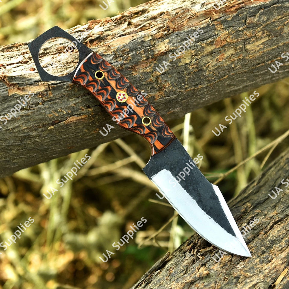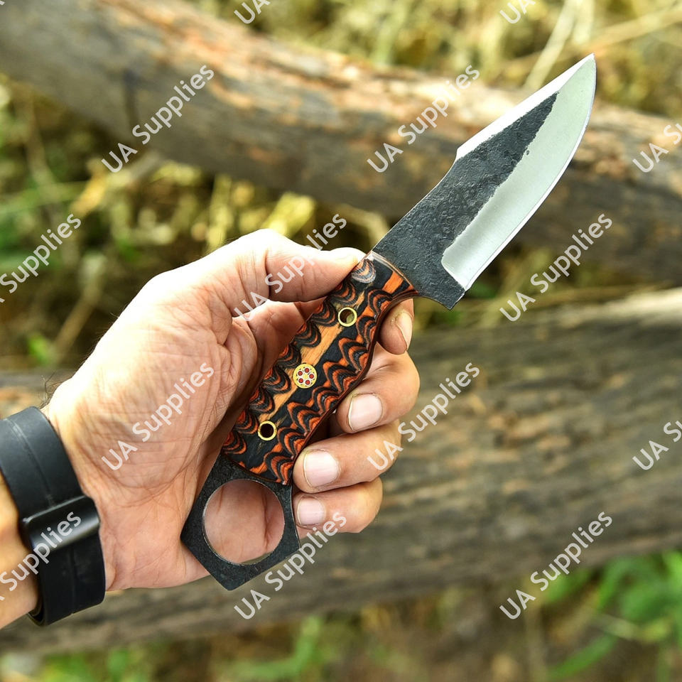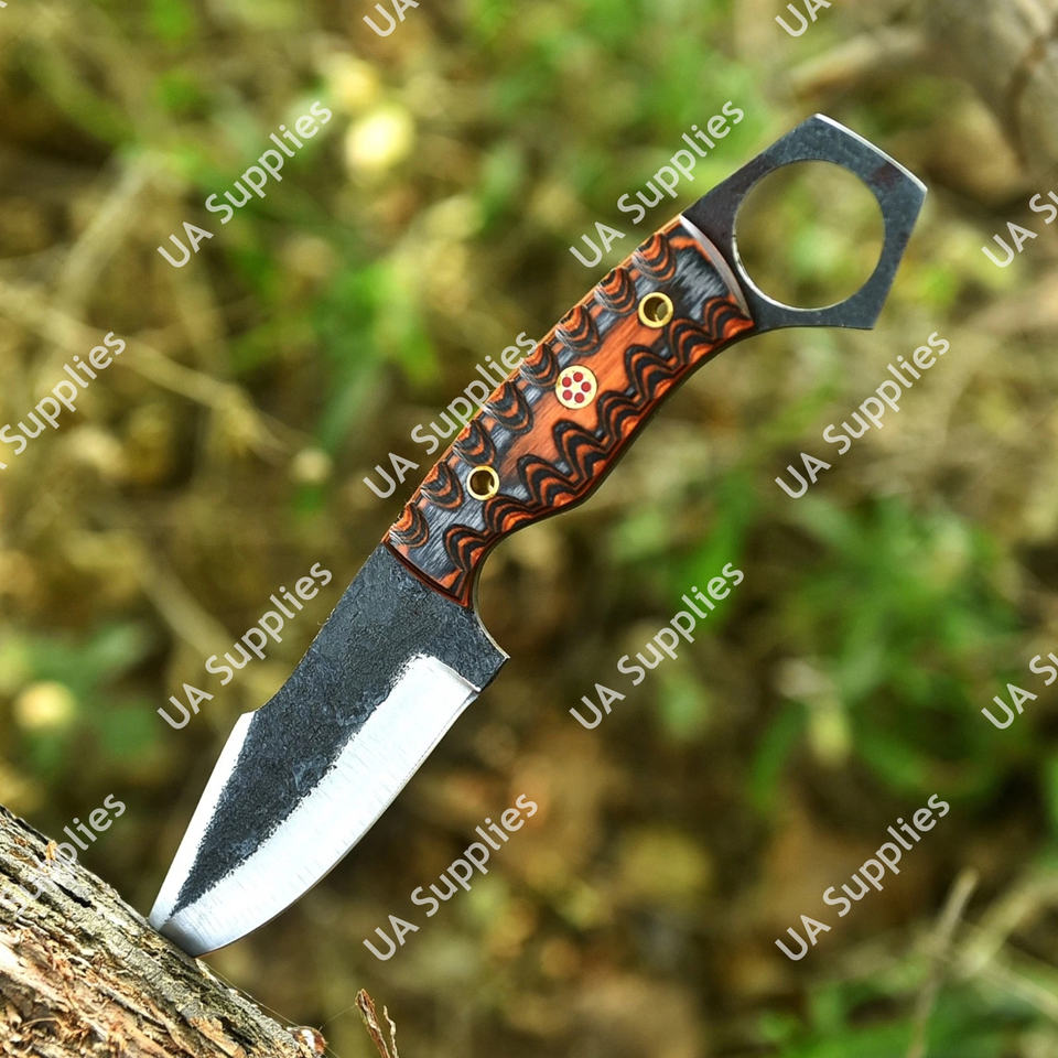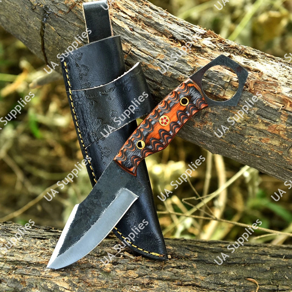 มีดสกินเนอร์เหล็กกล้าคาร์บอนสูง 1095 คมกริบ ตีขึ้นรูปด้วยมือ พร้อมรูสำหรับนิ้วมือ เหมาะสำหรับการล่าสัตว์ ตั้งแคมป์ พกพาประจำวัน พร้อมปลอกมีดไม้ปักก้า ตัวเลือกที่ดีที่สุดสำหรับเป็นของขวัญ