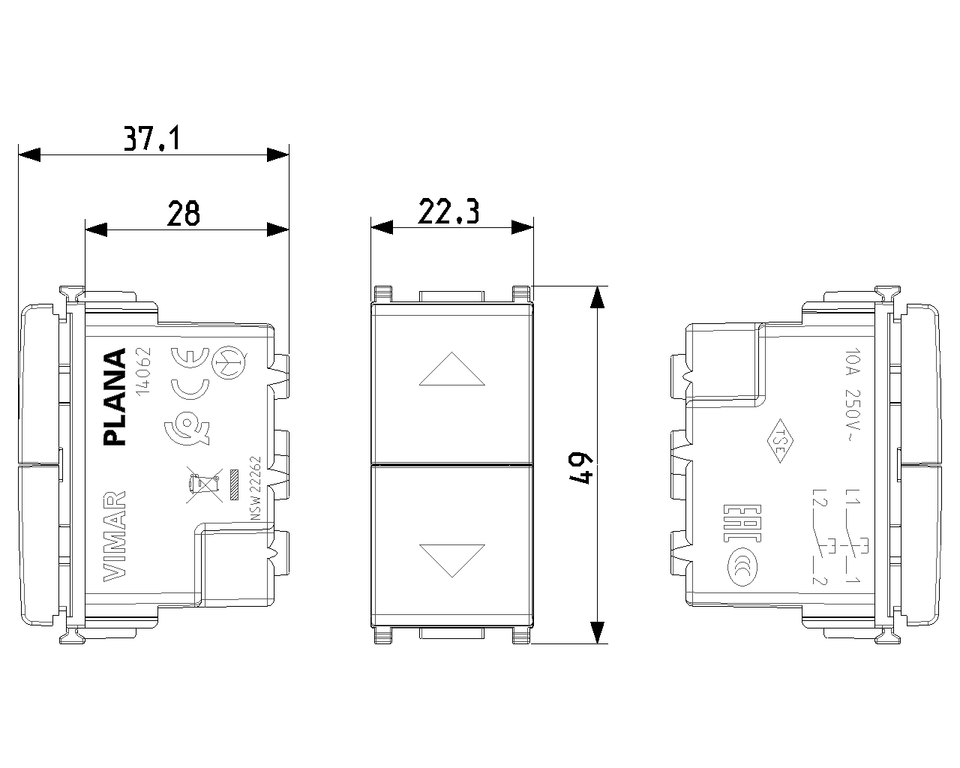 Vimar 10A คู่ที่เชื่อมต่อกันปุ่มกดสีขาว1P NO + ไม่มีสวิตช์แบบแยกส่วน IP20 250V PC/หน่วงไฟ-5C + 40C สำหรับลูกกลิ้ง