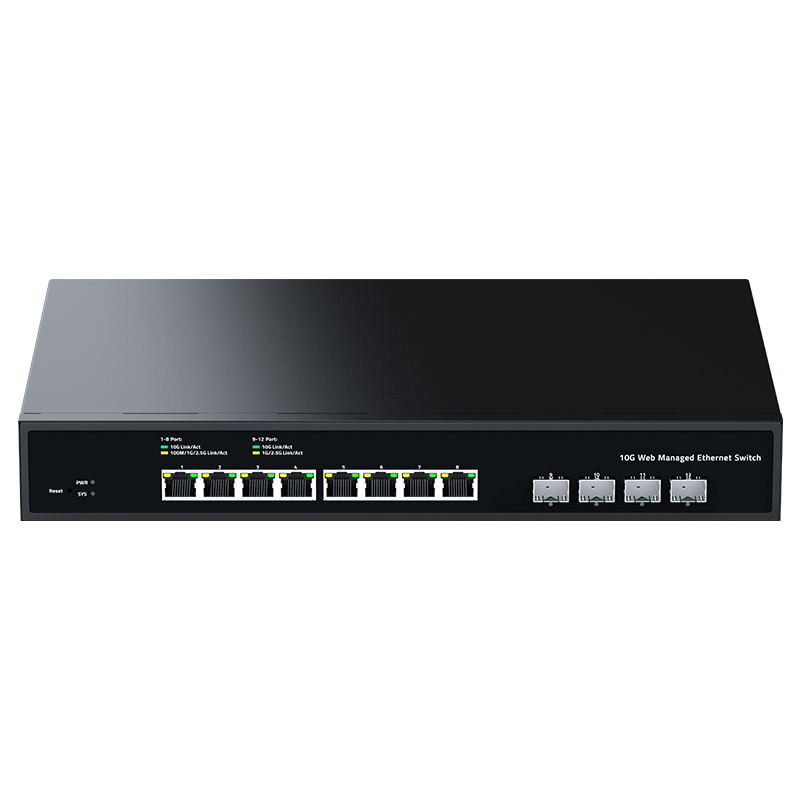 สวิตช์อีเธอร์เน็ตแบบจัดการผ่านเว็บ 10Gb 8 พอร์ต พร้อมพอร์ต SFP+ 4 พอร์ต สำหรับโฮมแล็บ ฮับเครือข่าย ตัวแยกสัญญาณอินเทอร์เน็ต ความจุ 240Gbps รองรับ VLAN และ QoS