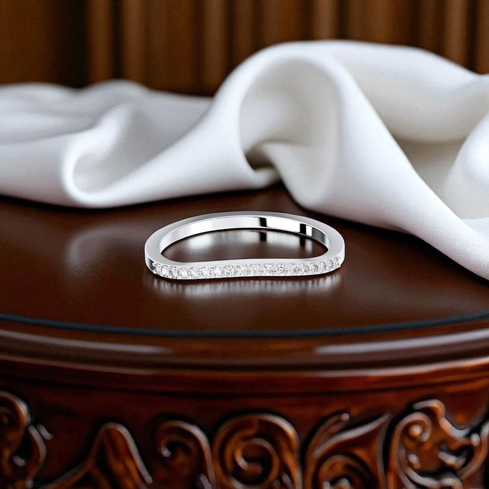 แหวนแต่งงานครึ่ง VVS-VS เพชรโมอิส E-F 10K/14K/18K สีทอง0.25กะรัต