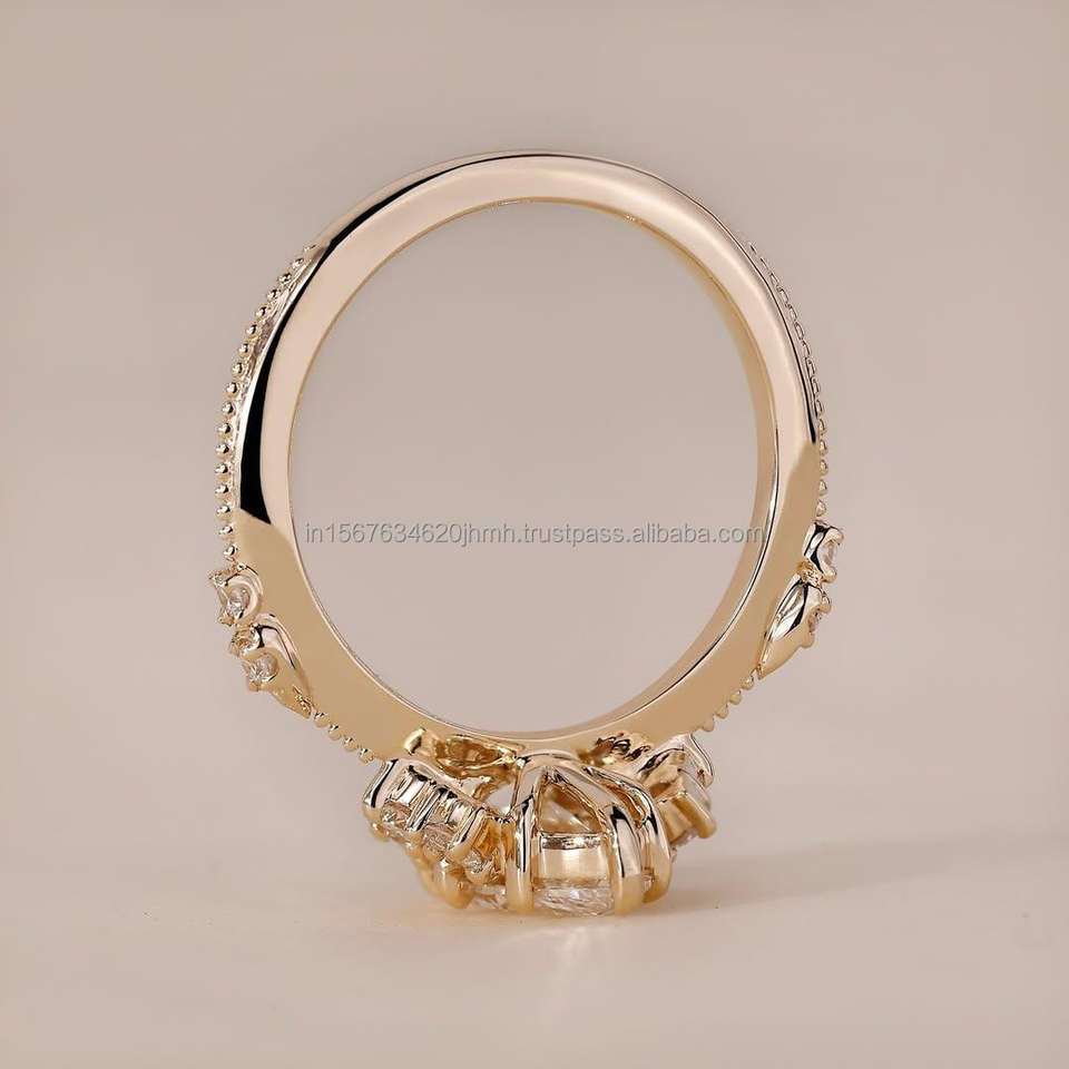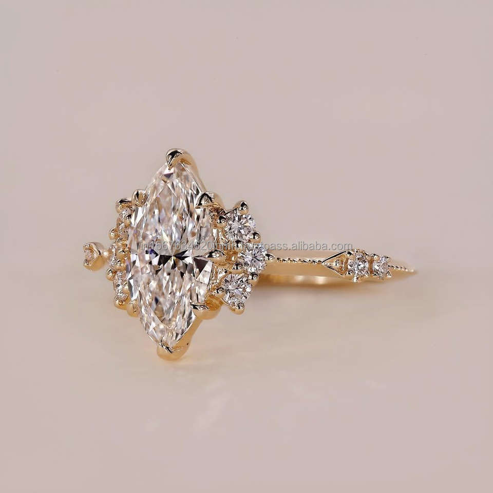 แหวนเพชรแล็บโกรว์ดีไซน์หรูหราทอง 10K/14K/18K สำหรับผู้หญิง เครื่องประดับคุณภาพสูง IGI ทรงมาร์คีส์ แหวนหมั้นและแหวนแต่งงาน