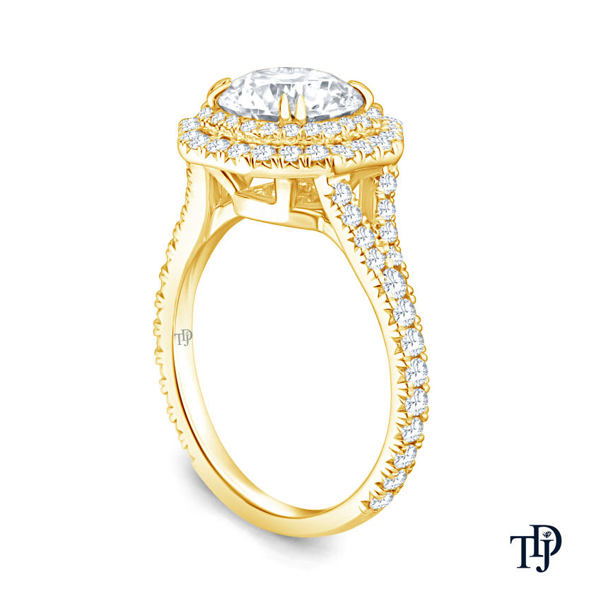 แหวนเพชร10K ปรับแต่งได้สีทองรัศมีคู่สำหรับห้องแล็บแหวนแยกแปดเหลี่ยมพร้อมเพชรศูนย์แพลทินัมตัดแฟนซี