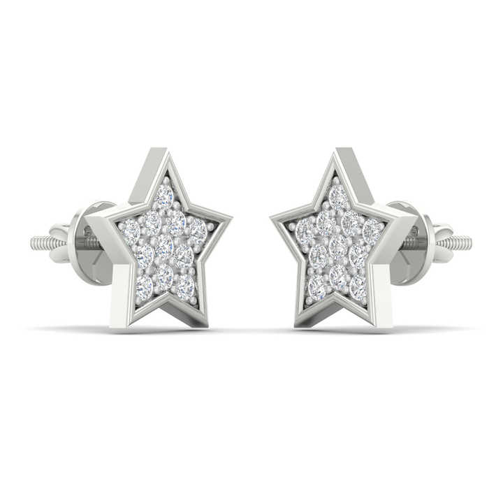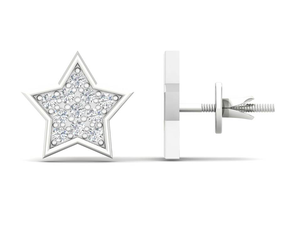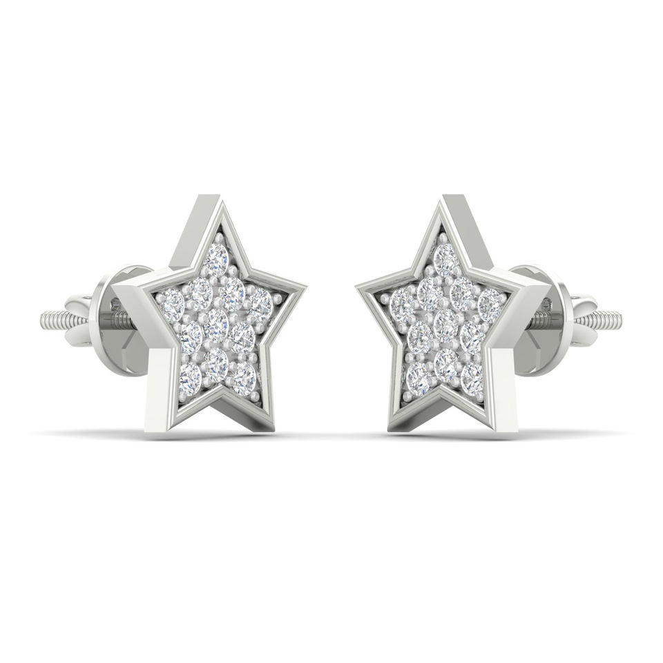 ต่างหูเพชรรูปดาวทองคำ 10K แบบเกลียวหลัง | ต่างหูเพชรแท้ทรงคลัสเตอร์ สไตล์ฮิปฮอป ของขวัญวันครบรอบสุดหรูสำหรับผู้หญิง