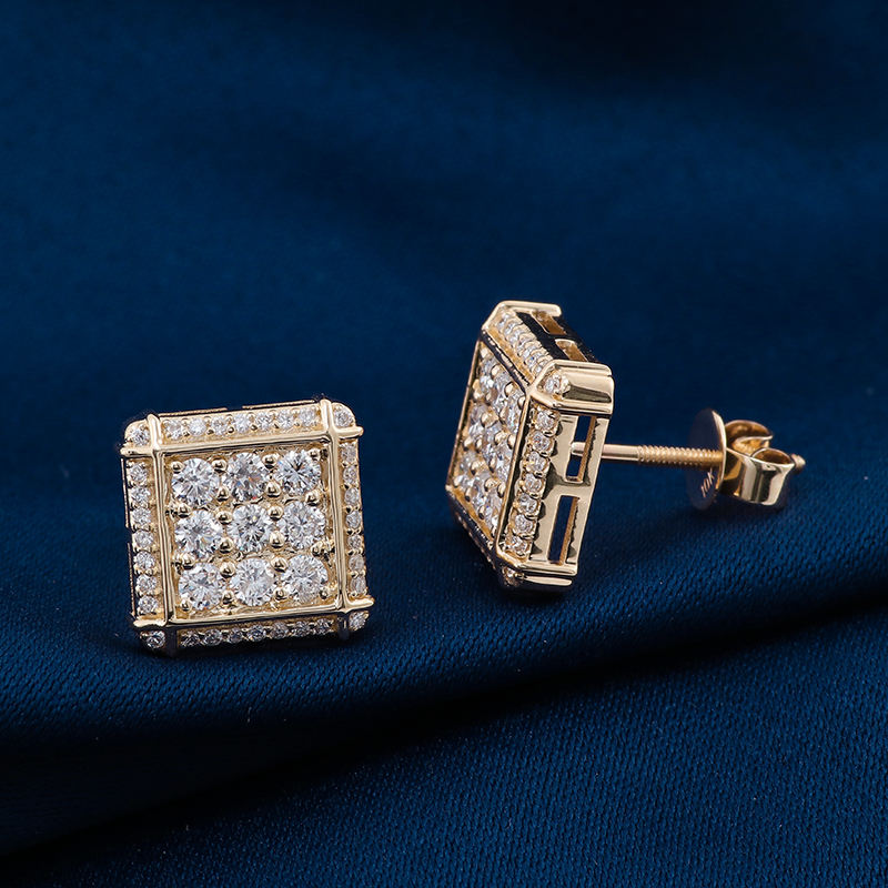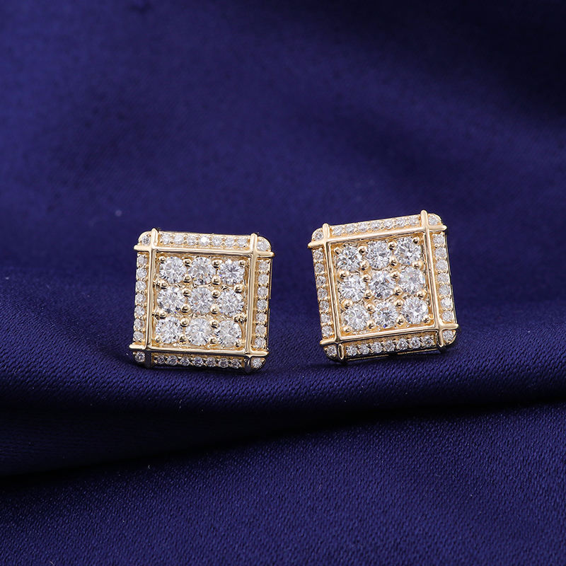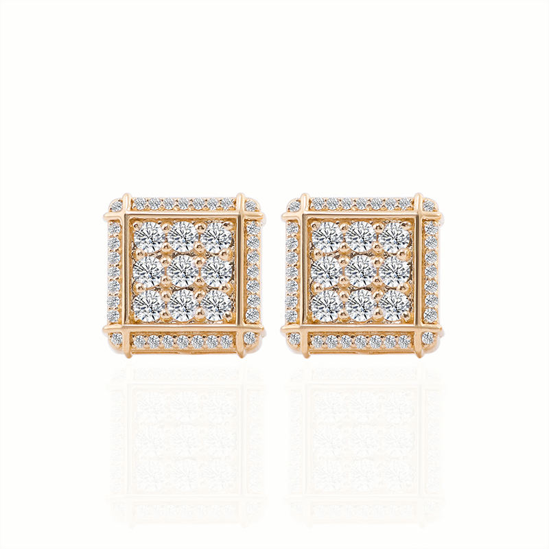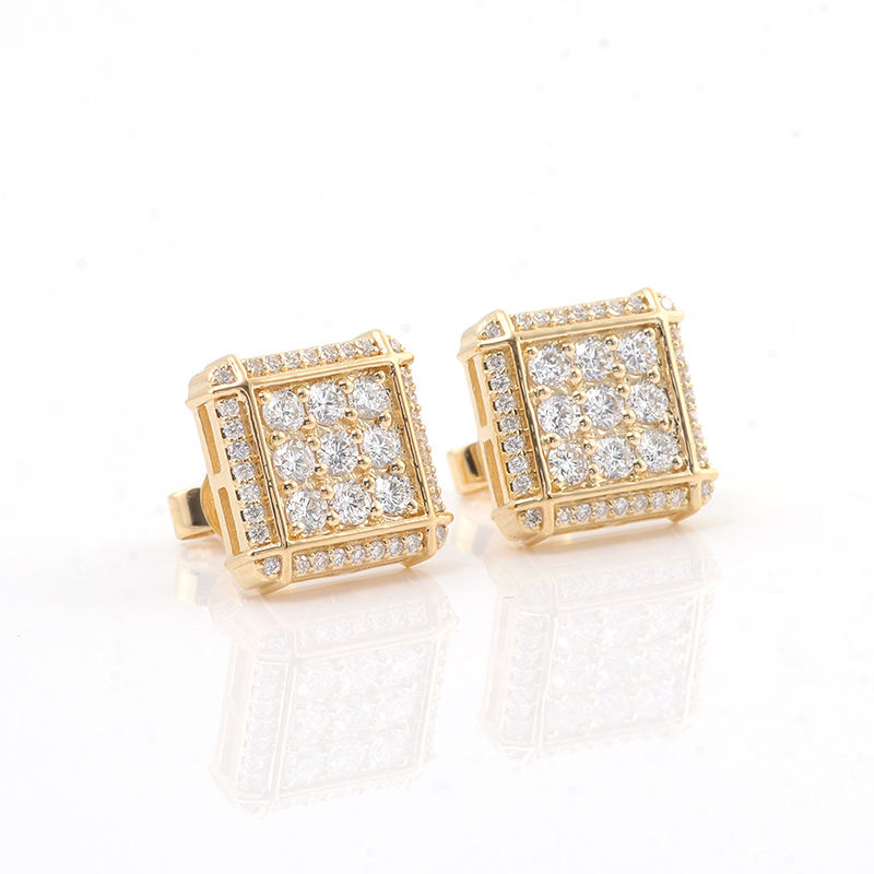 ต่างหูเพชรแท้10K ทรงสี่เหลี่ยมสำหรับผู้ชายต่างหูก้อนน้ำแข็งสีทองแท้ต่างหูเพชรแท้ต่างหูสำหรับผู้ชายและผู้หญิง