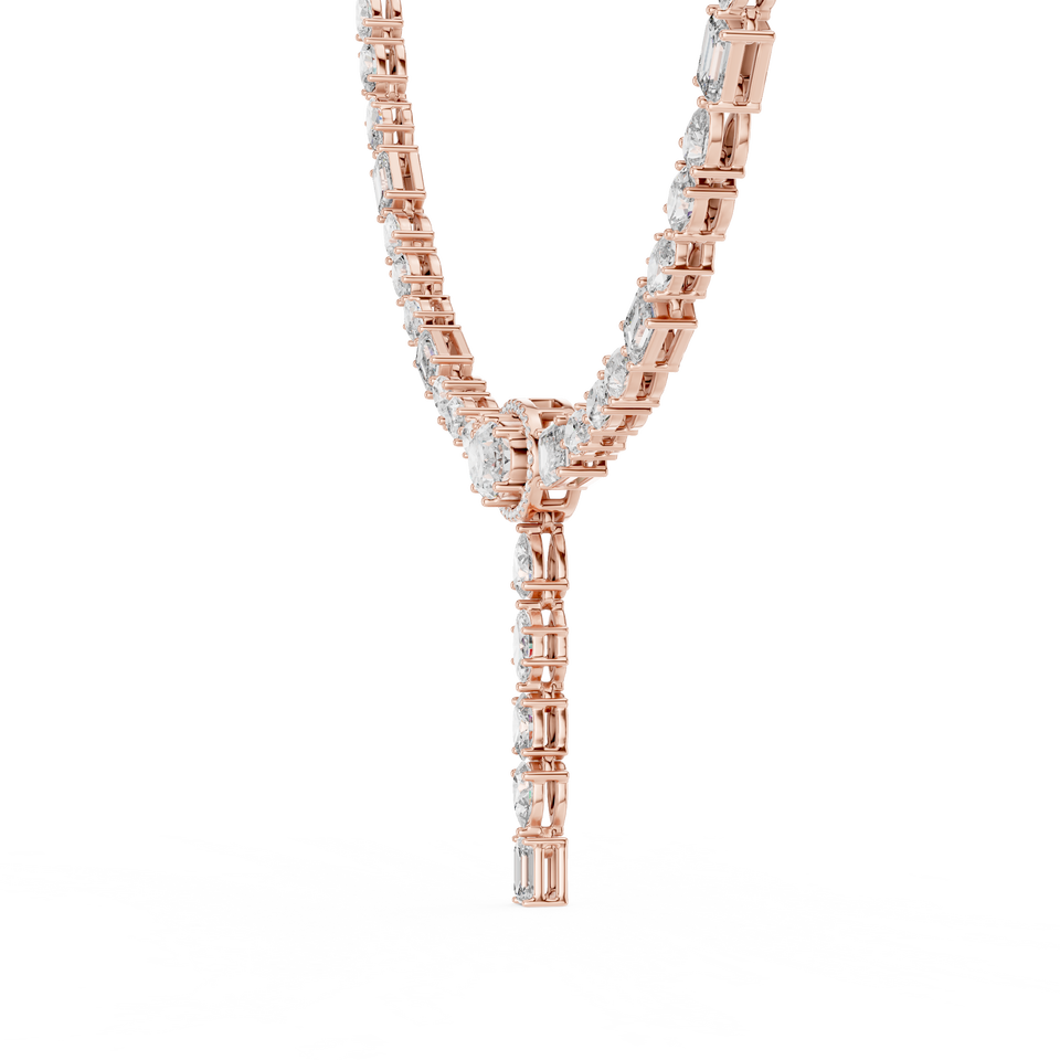 สร้อยคอทรงหยดน้ำรูปตัว Y ประดับเพชรทรงรีสีโรสโกลด์ 10K ผลิตในห้องปฏิบัติการ ดีไซน์วินเทจ สง่างาม หรูหรา พร้อมเสน่ห์แบบราชินี สำหรับผู้หญิง