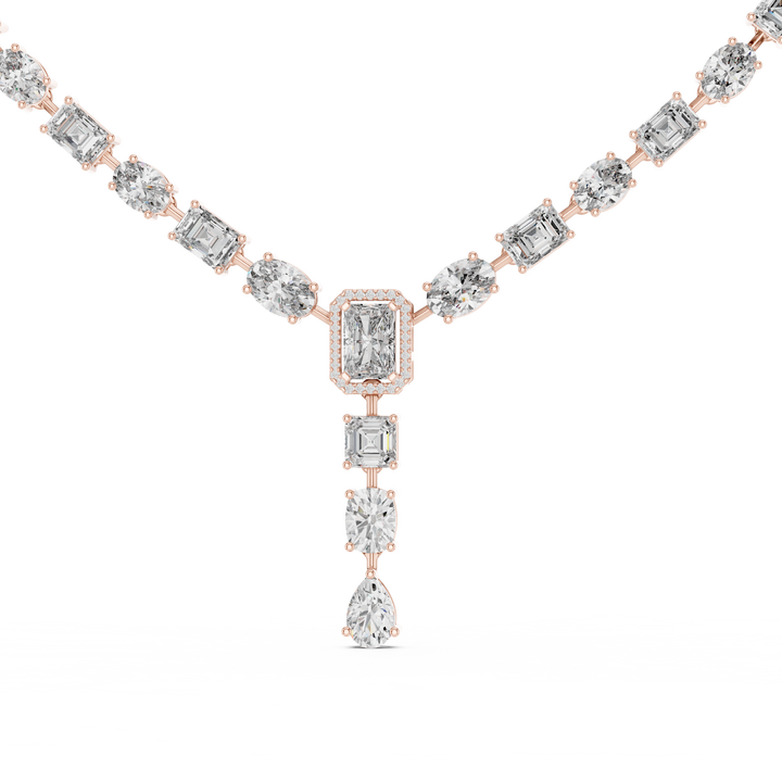 สร้อยคอจี้เพชรแล็บโกรว์สีโรสโกลด์ 10K สำหรับผู้หญิง ดีไซน์วินเทจทรงมรกตแบบรอยัลแคสเคด เหมาะสำหรับงานแต่งงานและสวมใส่ในชีวิตประจำวัน
