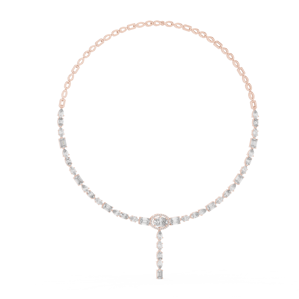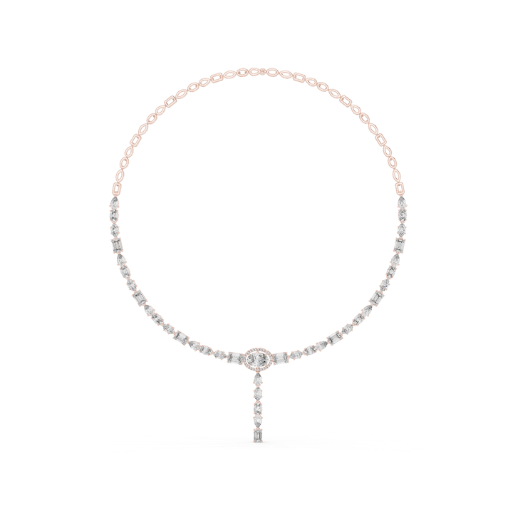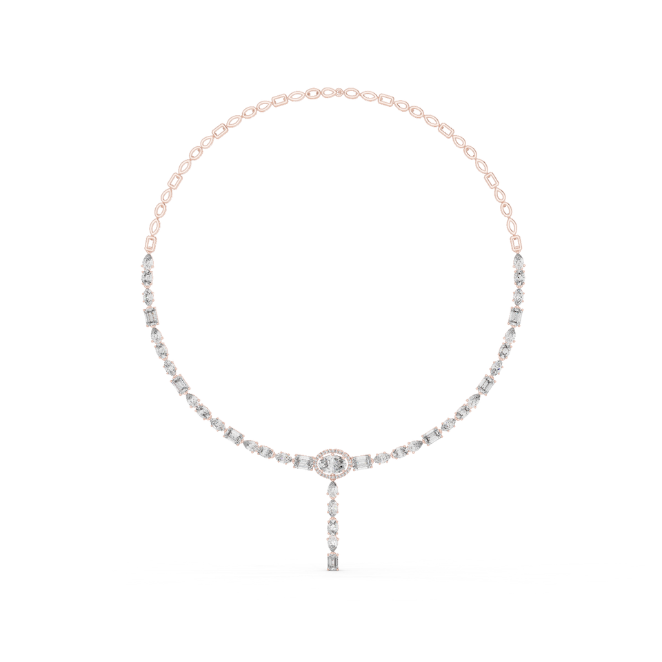 10K โรสโกลด์แลปปลูกรูปไข่สตาลูเม่นผ้าคลุมหน้าลายดวงจันทร์ทรงหยดน้ำลายท้องฟ้าดริฟท์ออโรร่าสร้อยคอเพชรหรูหรา