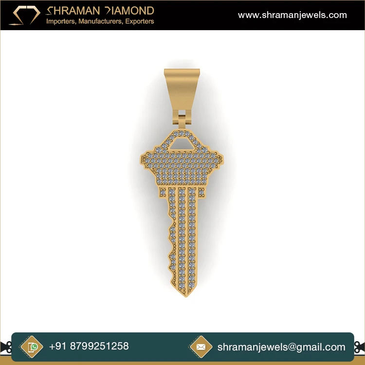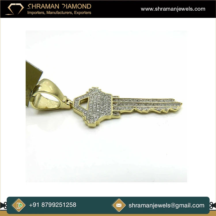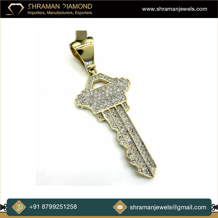 จี้ทองคำแท้ 10K ประดับเพชรโมอิสซาไนต์ระยิบระยับ รูปทรงกุญแจมาสเตอร์ สื่อถึงความสำเร็จและอำนาจ เครื่องประดับที่ไม่เหมือนใคร
