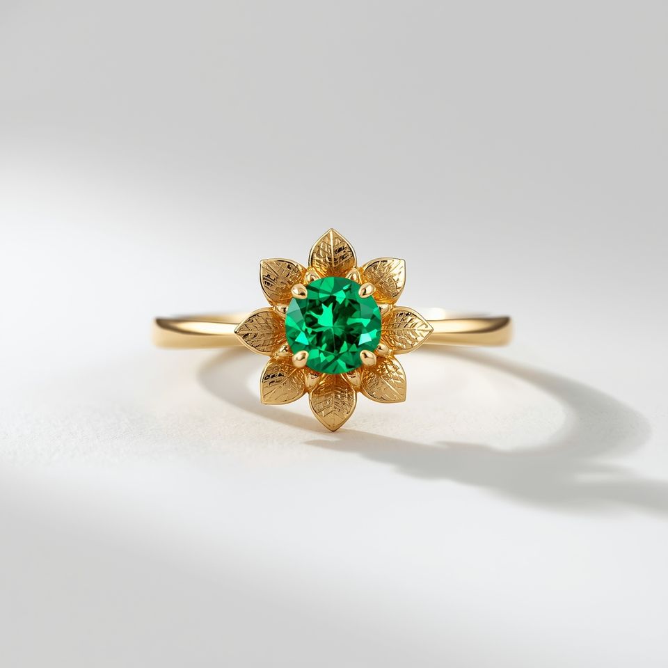 แหวนหมั้นทองคำแท้ 10K ชุบโรเดียม ประดับมรกตทรงดอกไม้ พร้อมพลอยสีเขียวทรงกลมตรงกลาง แหวนแต่งงานหรูหราสำหรับผู้หญิง