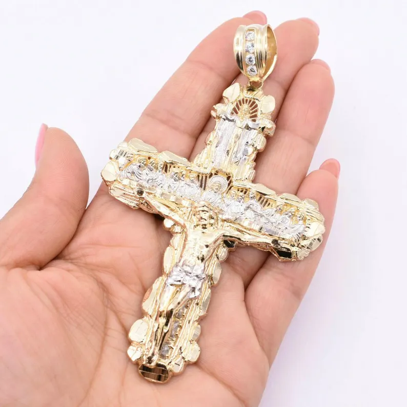 จี้ไม้กางเขนชุบทองแท้สีเหลืองแท้10K แบบไม่มีจี้เพชรสำหรับเครื่องประดับแฟชั่นของผู้ชาย