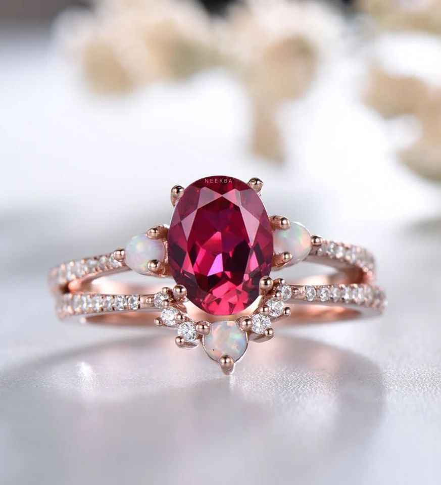 Side Stones:Lab-Opal, Moissanite