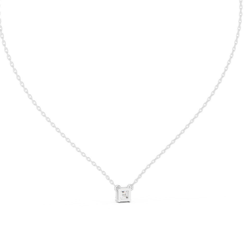 จี้เพชรทรงแอสเชอร์ 10K ทองคำขาว เพชรเพาะเลี้ยงในห้องปฏิบัติการ ชุบโรเดียม สร้อยคอสำหรับงานแต่งงานและวันครบรอบ ของขวัญสำหรับผู้หญิง 0.50 กะรัต