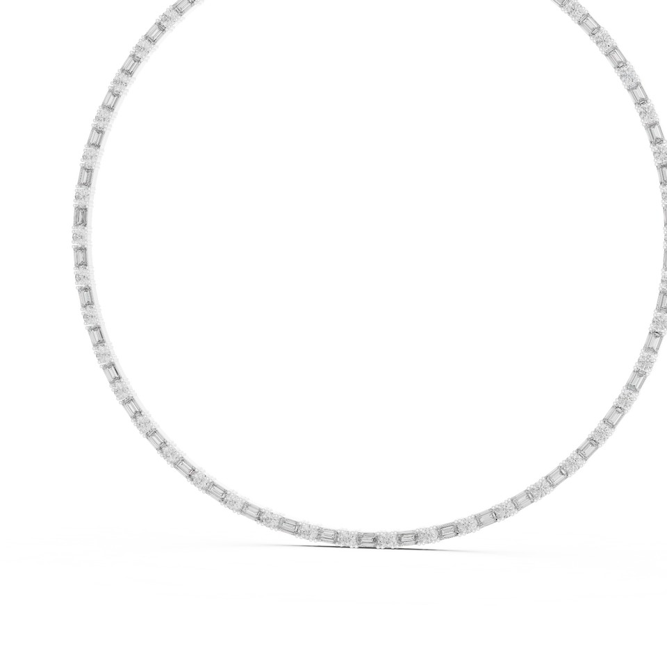 10K สร้อยคอทองคำขาวอีเทอร์นาลา Luxe สำหรับทำแล็บปลูกบาแกตต์ประดับเพชรสร้อยคอโรเดียมชุบออโรร่า