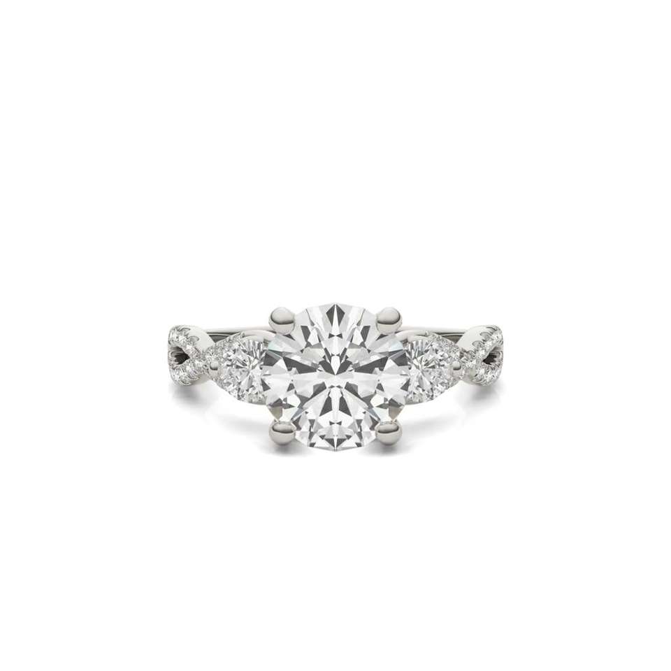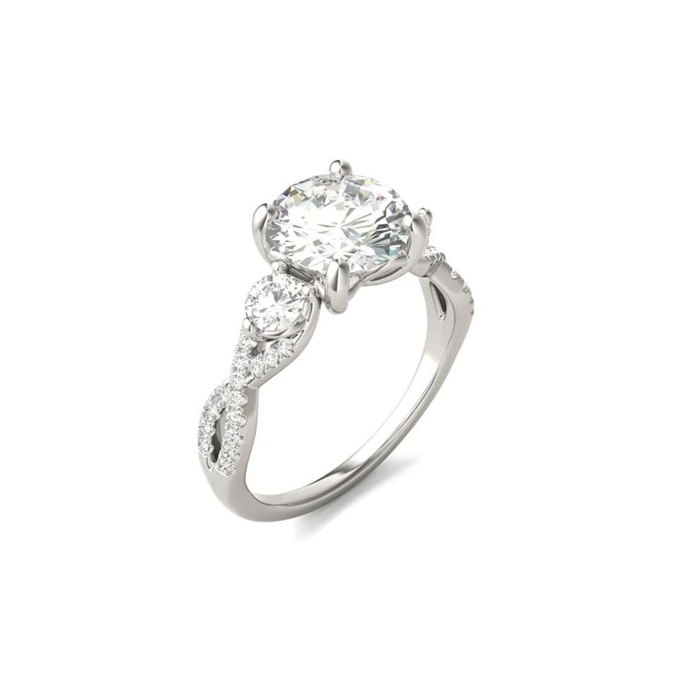 แหวนหมั้นเพชรเพาะเลี้ยงในห้องปฏิบัติการ รับรองโดย IGI ทองคำขาว 10K น้ำหนัก 2.3 กะรัต ดีไซน์หรูหราแบบสามเม็ด ตัวเรือนแบบเกลียว สำหรับงานแต่งงานหรือวันครบรอบ