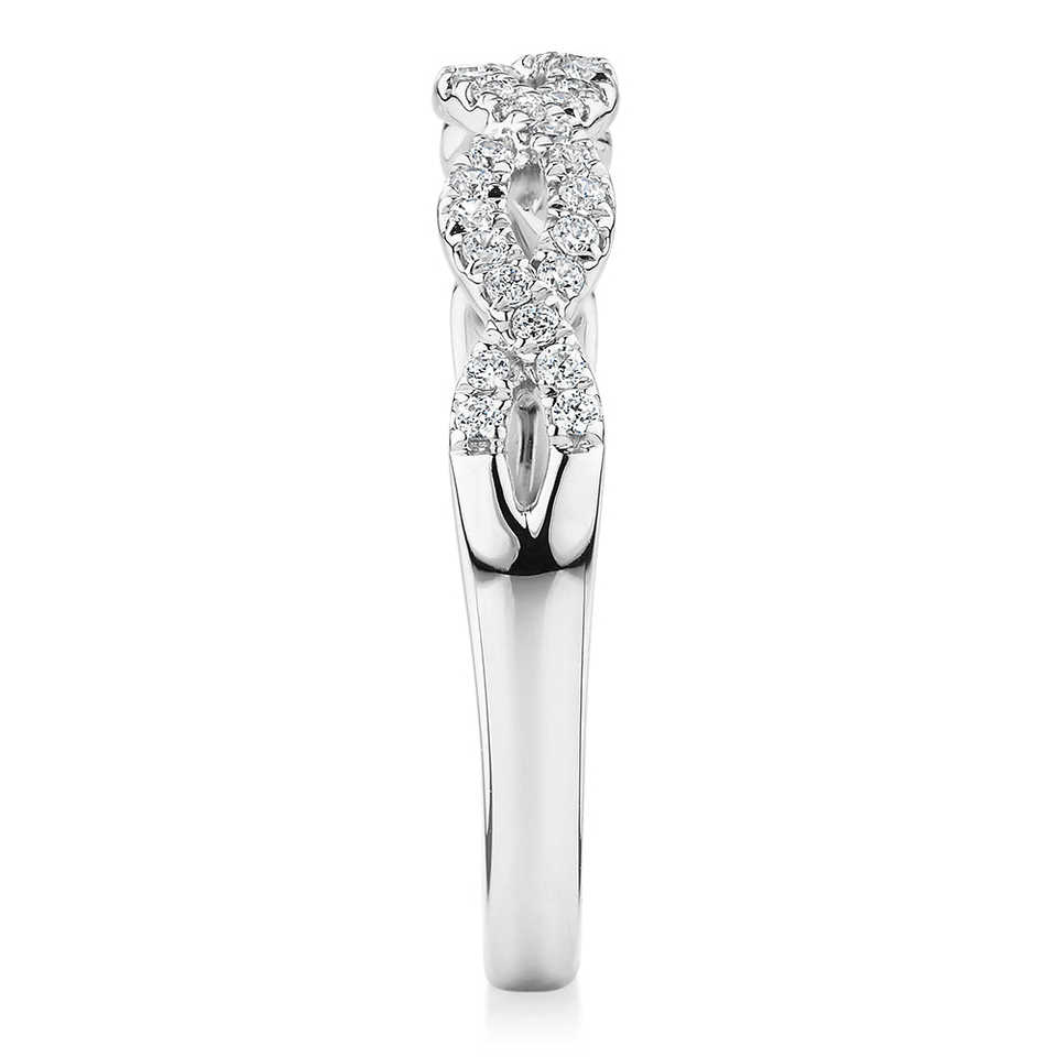 แหวนแต่งงานทองคำขาว 10K ประดับเพชรแล็บโกรว์ ดีไซน์อินฟินิตี้ทวิสต์ น้ำหนัก 0.35 กะรัต แบบโค้งซ้อนได้ เหมาะสำหรับงานหมั้น งานเลี้ยงฉลองครบรอบ ชุบโรเดียม