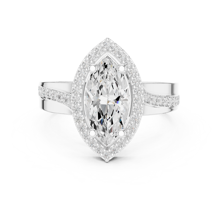 แหวนหมั้นเพชรแล็บโกรว์สีขาว 10K ดีไซน์มินิมอลคลาสสิก ประดับเพชรทรงมาควิสแบบลูมินารา ชุบโรเดียม ทรงมาควิสอิมพีเรียล