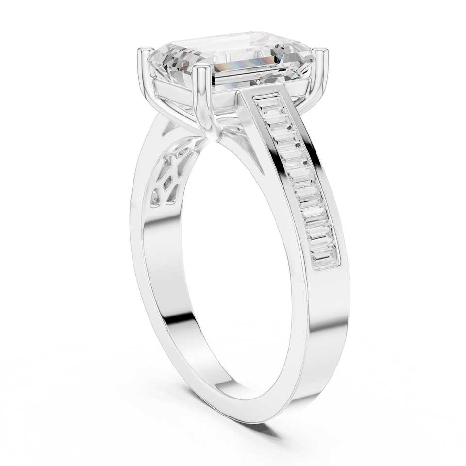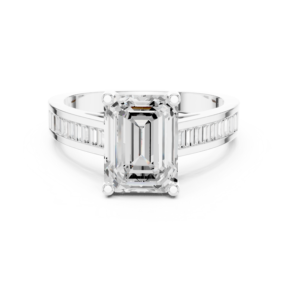 แหวนหมั้นเพชรแล็บโกรว์ 10K ทองคำขาว ดีไซน์มินิมอลคลาสสิก รุ่นโรเซลีน พรีซิชั่น ริง ฟิโอรา เอเมอรัลด์ ยูเนี่ยน ริง ชุบโรเดียม