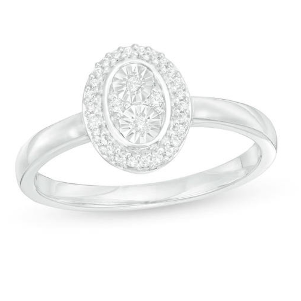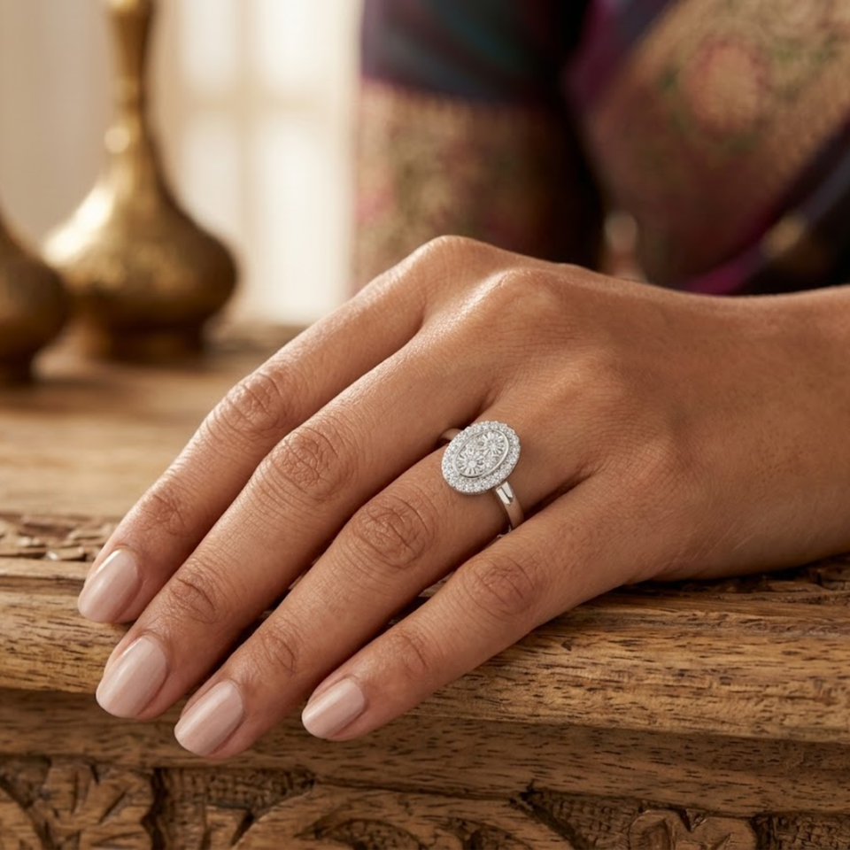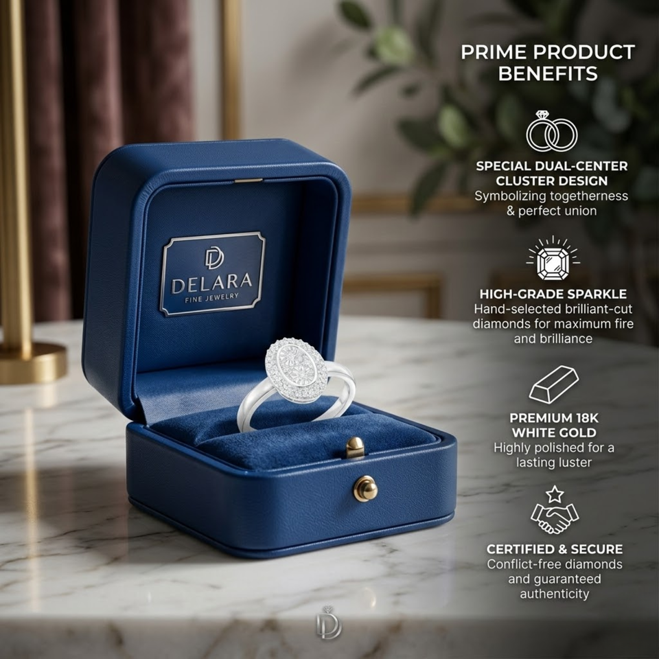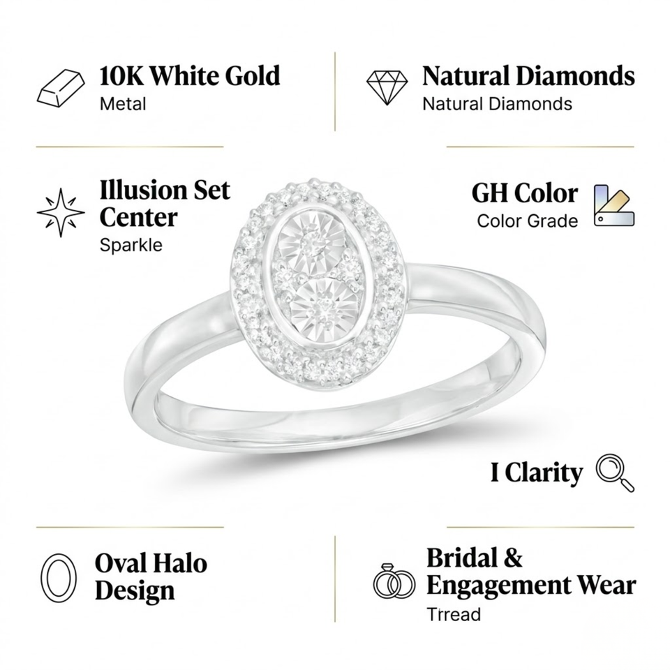 แหวนแต่งงานเพชรชุดอิลลูชั่นธรรมชาติ ทองคำขาว 10K สี GH ความใส I | แหวนหมั้นทรงวงรีสำหรับผู้หญิง เครื่องประดับชั้นดี