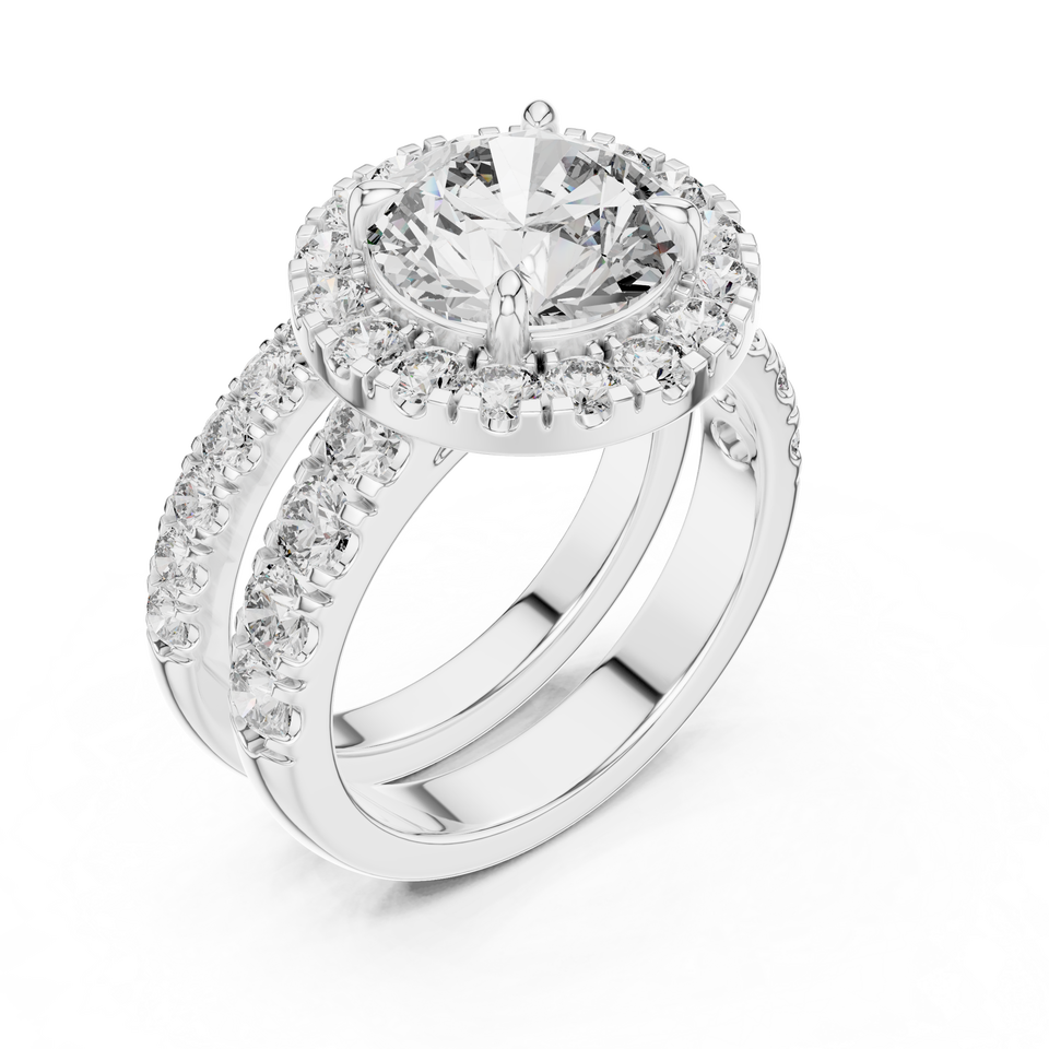 แหวนเพชรเม็ดกลมโรเดียมชุบโรเดียม10K สำหรับวันครบรอบแต่งงาน Luna MAJESTY