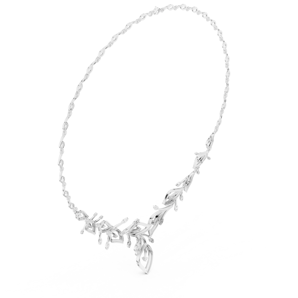 สร้อยคอเพชรประดับเพชร Elysian Vine Sparkle หรูหรา ชุบโรเดียม ทองคำขาว 10K