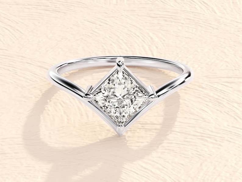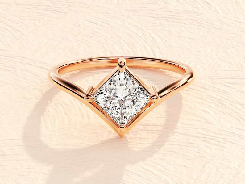 10K สีเหลืองทอง1CT เดี่ยวเจ้าหญิงตัดแหวนหมั้นในห้องปฏิบัติการเพชรที่ปลูกด้วย4ง่ามแหวนแต่งงานเพชรสัญญาสำหรับเธอ