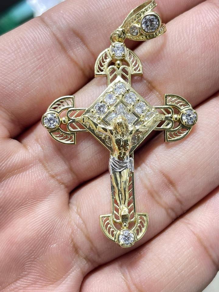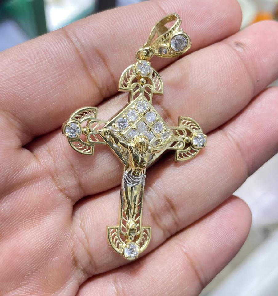 จี้กางเขนทองคำ 10K จี้ทองคำแท้ 10K สร้อยคอจี้กางเขน (6 กรัม)