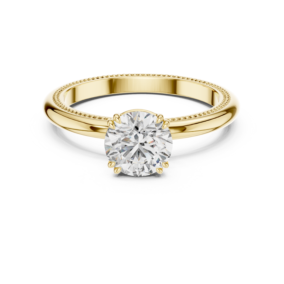 แหวนหมั้นเพชรเม็ดเดี่ยวทองคำ 10K สีเหลือง ประดับด้วยลายมิลเกรน สำหรับวันครบรอบ