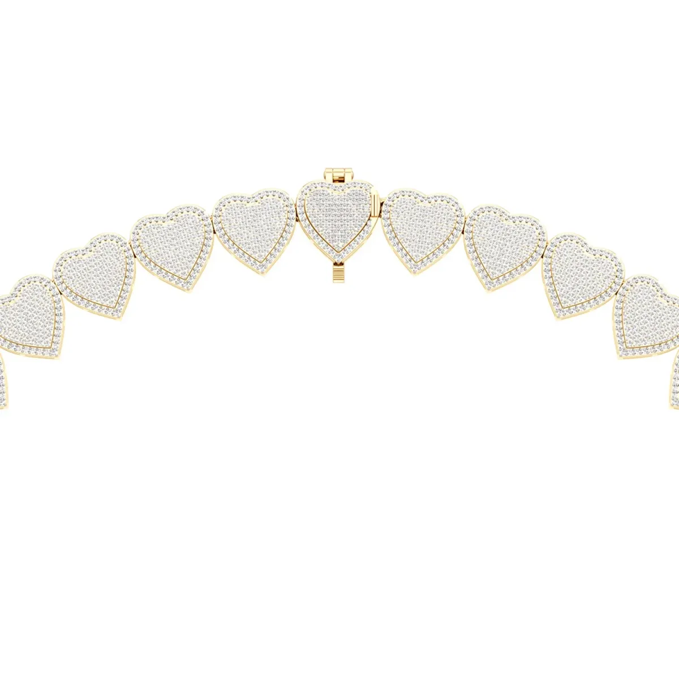 สร้อยคอทองคำ 10K ชุบโรเดียม ประดับเพชรทรงบริลเลียนต์ ผลิตในห้องปฏิบัติการ รับรองโดย IGI ดีไซน์รูปหัวใจแบบฮิปฮอป พร้อมตัวล็อกแบบกล่อง ความยาว 16 นิ้ว