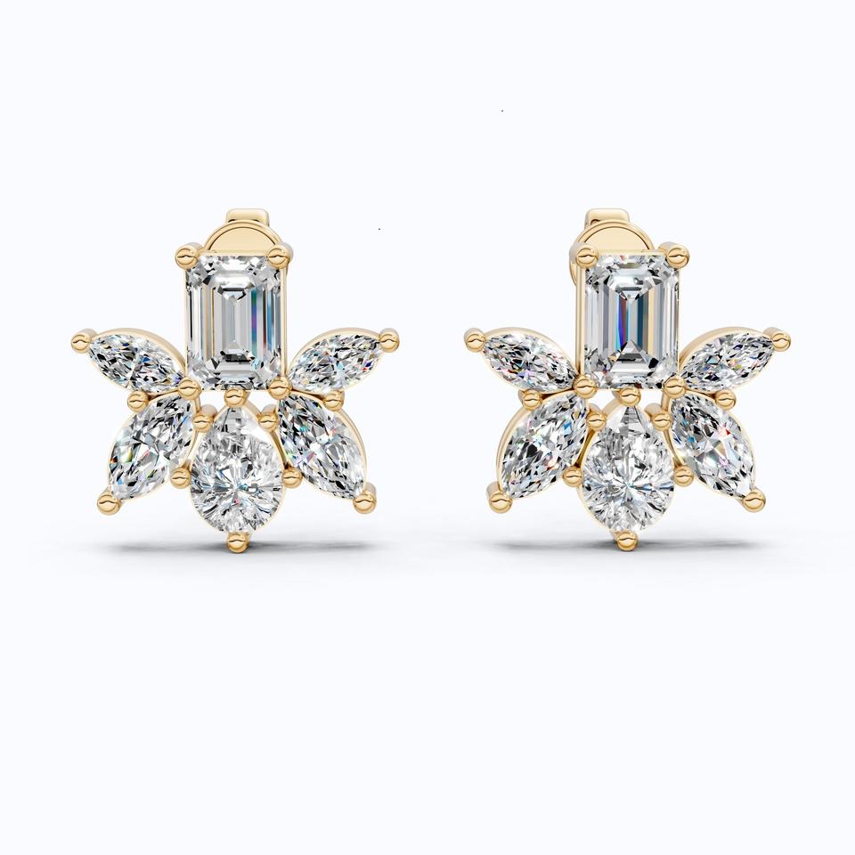 ต่างหูทองคำ 10K ประดับเพชรเพาะเลี้ยงรูปผีเสื้อ รับรองโดย IGI ดีไซน์แบบกลุ่มหลายรูปทรง เครื่องประดับชั้นดีสำหรับผู้หญิงสำหรับงานปาร์ตี้