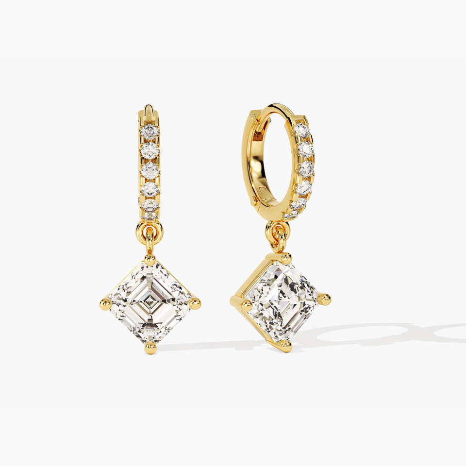 ต่างหูแบบห่วงทรงหยดน้ำประดับเพชรทรง Asscher ทองคำ 10K ได้รับการรับรองจาก IGI เพชรเพาะเลี้ยงในห้องปฏิบัติการ ดีไซน์เรียบหรู เหมาะสำหรับงานปาร์ตี้