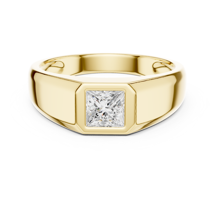 แหวนตราประทับเพชรทรงเจ้าหญิงทองคำขาว 10K เพชรเพาะเลี้ยงทรงสี่เหลี่ยม แหวนตราประทับเพชรทรงเจ้าหญิงทันสมัย