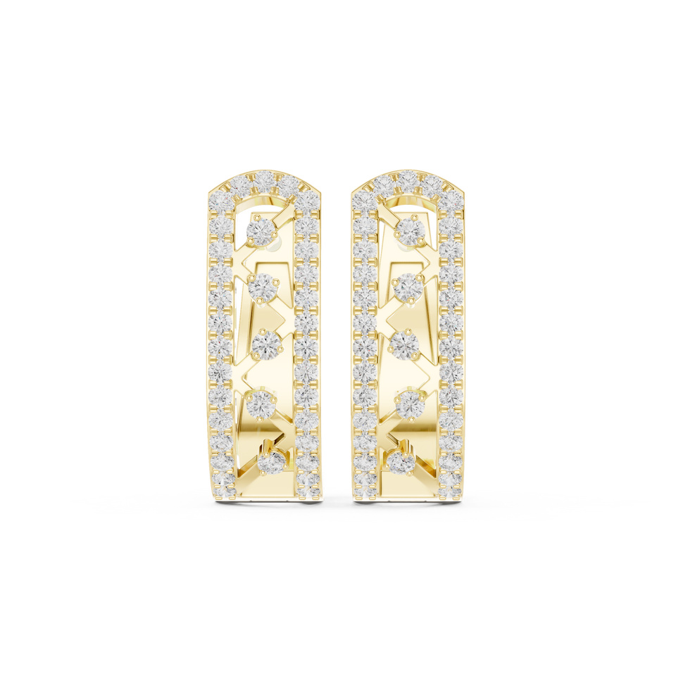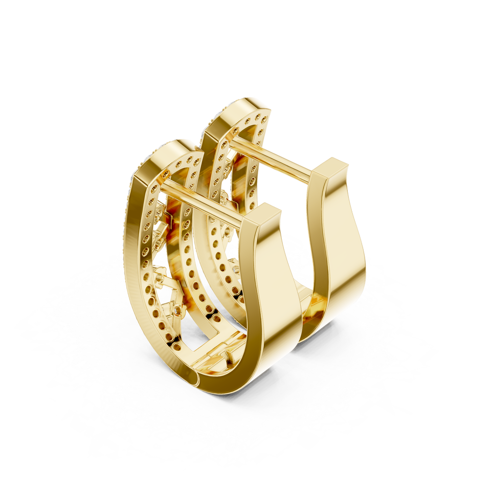 10K Yellow Gold Plated Luxury Multi-Row Lab Grown Brilliant Cut Diamond Huggie Hoop Earrings 0.39ct Women's Modern Designer