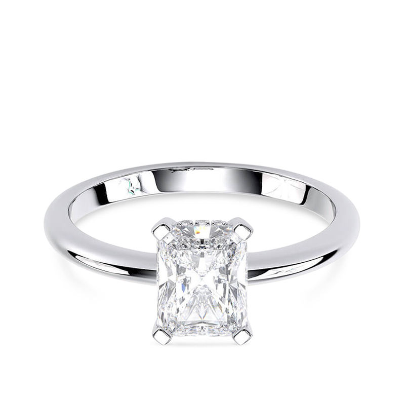แหวนเพชรเม็ดเดี่ยวทรงเรเดียนท์คัท 1.5 กะรัต ทองคำขาว 10K ชุบโรเดียม ได้รับการรับรองจาก IGI เหมาะสำหรับงานหมั้นและงานแต่งงาน