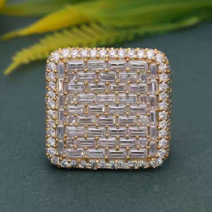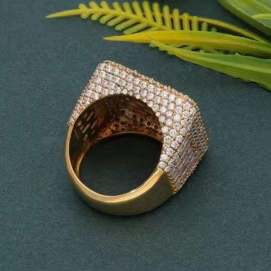 แหวนหมั้นเพชรโมอิสซาไนต์ทรงกลมสีเหลือง 10K แบบปลูกในห้องปฏิบัติการ สไตล์ฮิปฮอปสำหรับผู้ชาย ดีไซน์วินเทจเคลือบโรเดียม แหวนแต่งงานสุดพิเศษ
