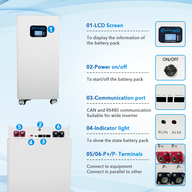 แบตเตอรี่ลิเธียมไอออนติดผนัง:51.2V