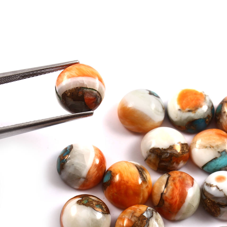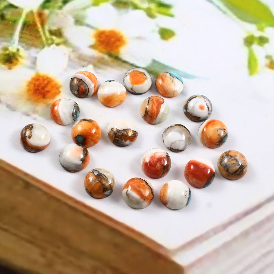 10มม. AAA แร่ทองแดงหนามหอยนางรมธรรมชาติเทอร์ควอยส์ทรงกลมหลังแบนปรับเทียบอัญมณีอัญมณีหลวมทำขายส่งมาก