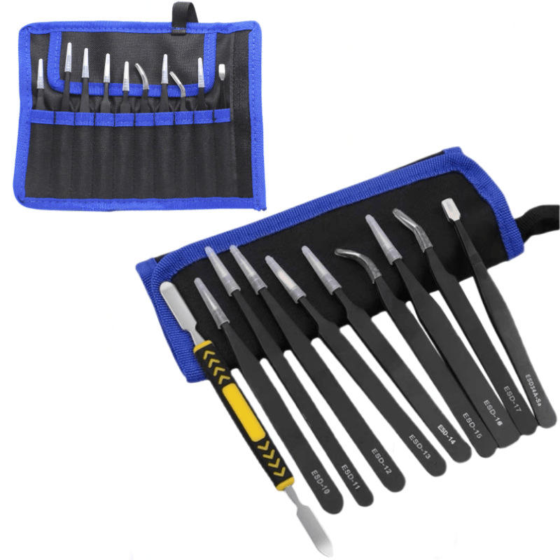 ชุดเครื่องมือแหนบมีความแม่นยำ10ชิ้นชุดแหนบป้องกันไฟฟ้าสถิตย์ชุดปากคีบสแตนเลสสำหรับงานหัตถกรรมอิเล็กทรอนิกส์งานห้องปฏิบัติการ