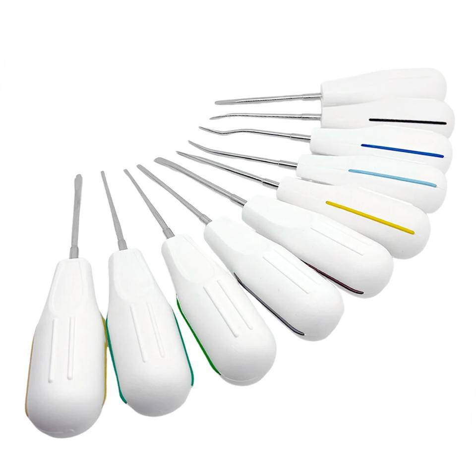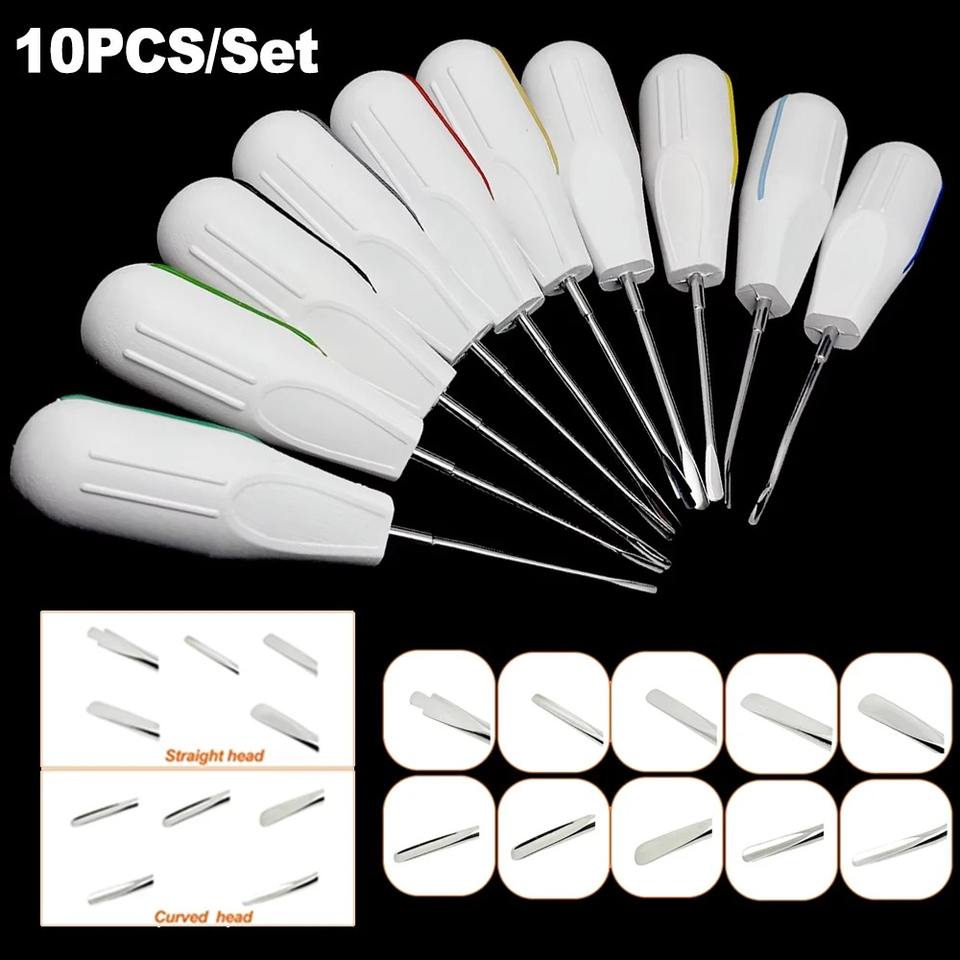 ชุดอุปกรณ์ถอนฟัน 10 ชิ้น ทำจากสแตนเลส ที่ถอนฟันแบบโค้ง/ตรง สำหรับการผ่าตัดช่องปาก เครื่องมือทันตแพทย์