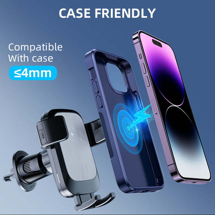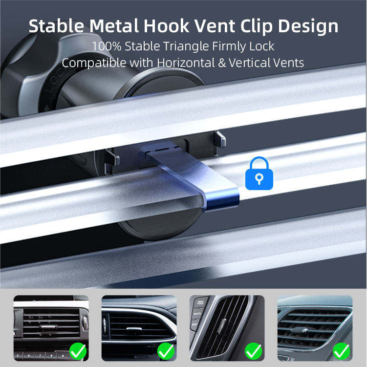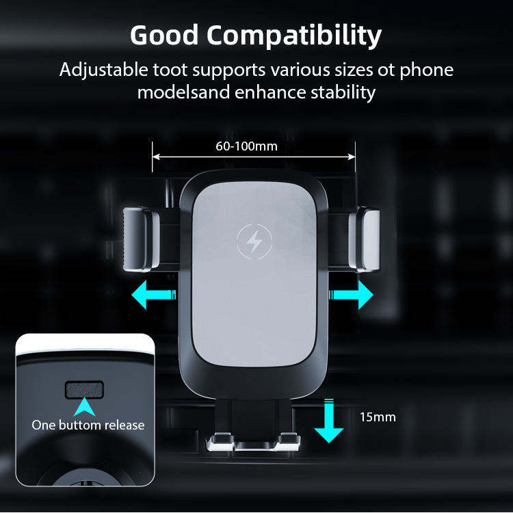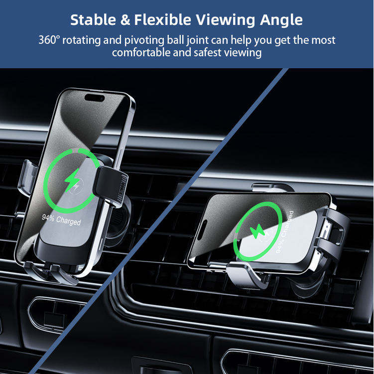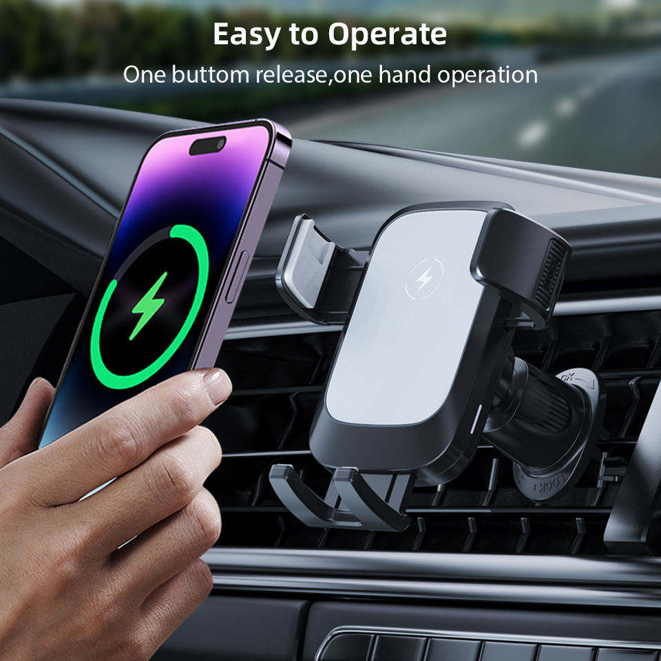 ที่ชาร์จไร้สายในรถยนต์แบบเร็ว 10W พร้อมพอร์ต Type-C และปุ่มกดแบบกลไกสำหรับยึดช่องแอร์ ใช้ได้กับโทรศัพท์มือถือ 12-24V